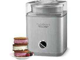 Bring the ice cream shop home! This fully automatic Cuisinart Ice Cream Maker whips up homemade ice cream, sorbet, and frozen yogurt in as little as 25-30 minutes. The double-insulated freezer bowl makes up to 2 quarts at a time, while a heavy-duty motor keeps things smooth and creamy. Add chocolate chips, cookie chunks, or fruit through the large ingredient spout, then let it do the work. Includes an instruction & recipe book and comes in a sleek brushed stainless steel finish.