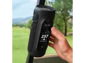 Included is a Blue Tees Player+, a GPS touchscreen golf speaker powered by the Blue Tees Game App, combining premium audio with on-course distance guidance. You'll have access to 42,000+ courses, all snapped onto your cart with its built-in magnetic strip.