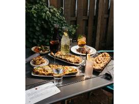 Gather friends or family for a relaxed and memorable evening at Poppy's, a charming restaurant known for its warm, welcoming atmosphere and cozy setting. This private cocktail gathering for up to 12 guests will take place on Poppy's outdoor garden patio.