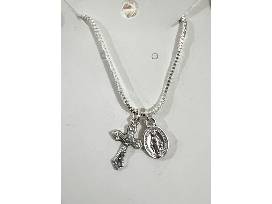 Silver Necklace with Crucifix and Miraculous Medal (Made in Italy)