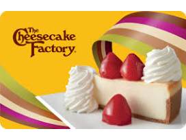 - $100 Cheesecake Factory Gift Card - Enjoy a delicious dinner or dessert at one of America's favorite restaurants.