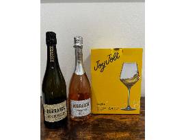Celebrate life's sparkling moments with this Fizz & Fabulous basket - a perfect pairing of elegance and effervescence. Enjoy a bottle of Borrasca Prosecco and a bottle of Borrasca Prosecco Rose, each offering crisp, refreshing bubbles and delicate flavor. To complete the experience, this basket includes a set of four 13.5-fl oz lead-free crystal wine glasses - beautifully designed to elevate every pour. Whether you're toasting a special occasion or savoring a quiet evening at home, this basket promises sophistication in every sip.