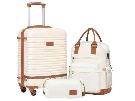 Travel in style with this premium Coolife 3-Piece Travel Set, complete with a matching 20" hardshell carry-on suitcase, travel backpack, and toiletry organizer, and a hanging toiletry bag-a total package valued at $120!
