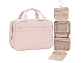 To complete the set, enjoy a stylish pink hanging toiletry bag-perfect for organizing shampoo, conditioner, brushes, makeup, and all your travel-sized essentials.