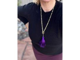 12This 24" gold clad necklace boasts a graceful silk tassel in the richest purple tones. Crafted in Las Vegas by survivors of human trafficking for the SHERO Foundation, every SHERO Tassle Necklace sold will support the sustainability of our SHERO Spirit and SHERO Skills Programs.