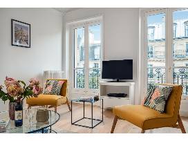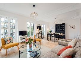 Located on a quiet street in the heart of the historic Latin Quarter and steps from the Pantheon and the Luxembourg Gardens. Designed for maximum of 4 guests. Apartment features 2 comfortable queen-sized bedrooms, 2 modern shower rooms, and separate powder room. Spacious living area boasts large windows, cozy dining area, and fully equipped kitchen. Surrounding neighborhood is rich in history, with narrow, cobblestone streets, vibrant market areas, and classic cafés, offering a bohemian atmosphere perfect for leisurely strolls.