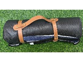 • (1) Roll-Up Blue & White Striped Blanket with Water Resistant Thermal Underside with Carry Strap