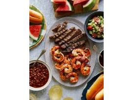 Filet Mignon, Ribeye, NY Strip, Top Sirloin, BBQ Ribs, Burnt Ends, Chicken Kabobs, Chicken Grillers, Marinated Chicken Breast, Sweet & Spicy Salmon, Lemon Garlic Scallops, Prawns