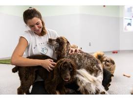 On the Ball is an upscale dog daycare and dog boarding establishment in Prairie Village whose devotion to dogs is shown through the loving care and attention they give to every pup.