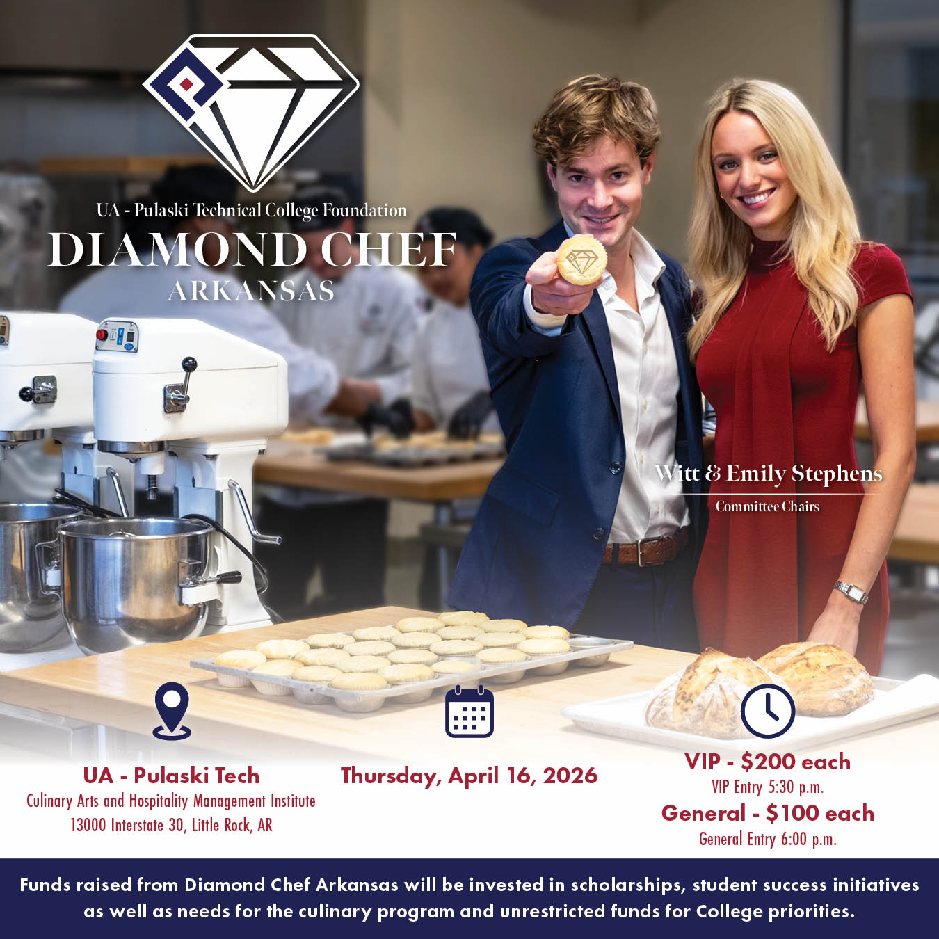 The University of Arkansas - Pulaski Technical College Foundation is pleased to announce the 2026 Diamond Chef Community Award honorees!