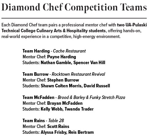 Diamond Chef Arkansas brings together an exceptional lineup of culinary talent, community leaders, and supporters to celebrate student success and excellence in hospitality.
