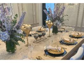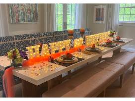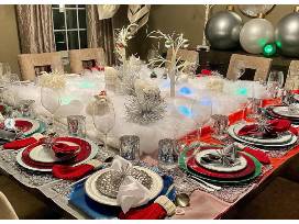 1Personalized table setting for 8, including plates, flatware, napkins, glassware, and decor for dinner party. Tara's Tables will deliver, set-up, and pick-up items before and after event.