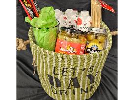 Everything you need for the ultimate brunch cocktail! Includes BuzzBox Bloody Mary mix, bamboo skewers, a pint glass, Jack Link's sausage sticks, Famous Dave's pickles, and pearl pimento olives. Mix, garnish, sip, and enjoy-let's day drink.