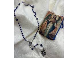 This one-of-a-kind Guardian Angel/St. Michael rosary features carefully selected brilliant blue fire polished beads in MUHS signature color, accented with detailed yet durable handcrafted metalwork and a meaningful crucifix centerpiece. This heirloom quality rosary includes the Miraculous and St. Benedict medals and a beautiful protective pouch. Designed for both prayer and keepsake display, it serves as a daily reminder of faith and the MUHS spirit.