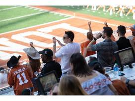 The Eyes of Texas Are Upon You as you enjoy the 2026-27 UT sports season. Includes 4 Mid-Field Lower-Level tickets to any home UT football game, along with a Stadium Area Parking Pass, pre-game field access during warm-ups and access to The Ricoh Stadium Club is located on the 5th floor of Bellmont Hall on the west side of Darrell K. Royal -Texas Memorial Stadium (Gate 4). The club offers a full cash bar in addition to a full game day buffet. The club opens 2 hours prior to kickoff and closes at the conclusion of the game. This package includes food and 2 drink tickets per ticket. and includes delicious food and