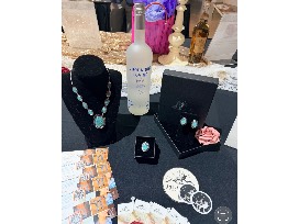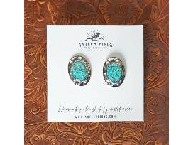 Bold and unapologetic, The Hattie set is a statement inspired by the rugged beauty of the West. Featuring a hammered drop pendant inlaid with crushed turquoise, this design delivers texture, movement, and striking color in a silhouette that commands attention.