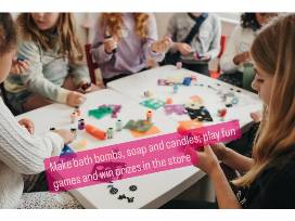 Get ready for some bubbly fun with a 90-minute Bath Bomb Party for up to 8 kiddos at the Savon de Coronado! Each child will get hands-on making their very own bath bomb, glycerin soap, and beeswax candle - plus enjoy games, prizes, and plenty of giggles along the way.