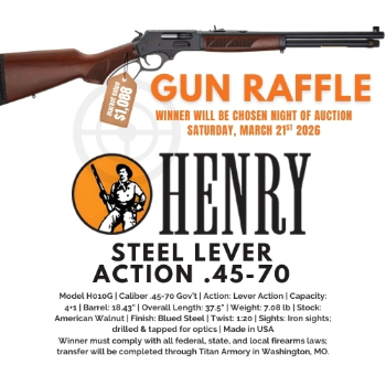 *The winning bidder must be 18+ years of age. The rifle can be picked up at Titan Hill Armory in Washington, MO, upon completion of ATF Form 4473.