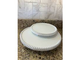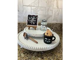 2 Piece White Tiered Tray with 3 Piece Coffee Decor