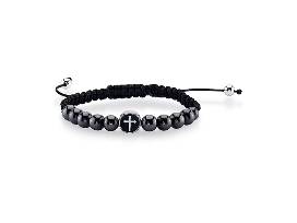 J.P. Army Men's Jewelry Stainless Steel 8 1/2 Inch Bead Cord Bracelet with Cross - Silver Tone