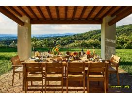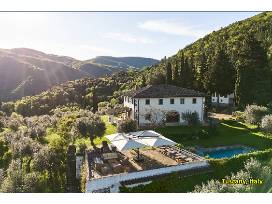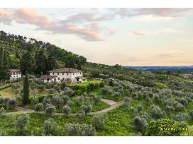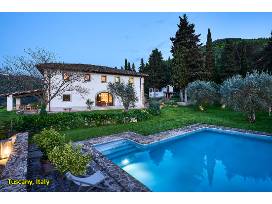 Set on over nine beautifully landscaped acres in the heart of the Florentine countryside, this luxurious private property features two renovated homes, the main villa and a separate guesthouse, as well as a six-car garage, lush gardens, shade trees, and olive groves. Centered around a stunning courtyard with outdoor terraces and a private pool, the estate's light-filled homes offer a total of six bedrooms and several spacious living areas, comfortably accommodating up to 12 guests. The residence is just minutes away from the historic Castle of Mugnana, well-known wineries and vineyards, and the lovely towns of Greve and Strada in Chianti, making it the perfect home base for an unforgettable adventure in Tuscany.