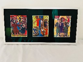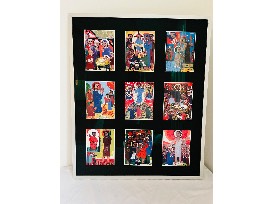Bring inspiration and color into your home with this unique framed faith art collection. This package includes four framed pieces-two featuring nine vibrant prints each and two smaller frames with three prints each-all illustrating scenes from scripture and the life and teachings of Jesus in a distinctive folk-art style.