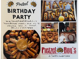 • $50 Pretzel Boys party pack certificate, redeemable for a custom pretzel, party tray, and dips