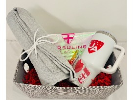 Celebrate Ursuline spirit with this themed gift bundle. The Ursuline bag includes a 40 oz branded thermal tumbler with handle, a cozy UA blanket, UA pen, and a UA heart decal. A practical and spirited collection for everyday use or showing school pride.