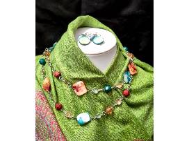 Plus, a Complimenting 15" Necklace with Mother-of-Pearl Shells, Glass Beads, and Silver Metal Components with Matching Earrings.