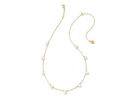 The classic pearl strand gets a modern refresh with the Leighton Gold Pearl Strand Necklace in Freshwater Cultured Pearl. Nine freshwater cultured pearls shimmer along a dainty gold chain-it's the ideal base for an everyday stack or a classy standalone piece.