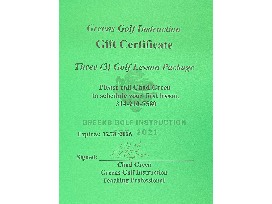 - Three (3) lesson package to be used at Green's Golf Instruction