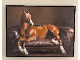 This horse isn't just sitting; it's lounging. It's the patron saint of Sunday afternoons and Netflix marathons. This piece of artwork deserves a space on your wall! You can find this artwork in the Club Bar tonight when you order a specialty drink!