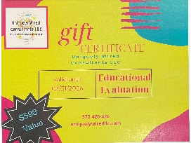 A Uniquely Wired gift certificate for a complete educational evaluation.