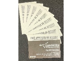 - (10) Free Appetizer or Dessert Coupons at Longhorn Steakhouse