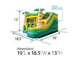 This auction listing is for a 5 in 1 rainbow inflatable or tropical high slide. Guaranteed for 6 hours of rental for your event. Meant for ages 12 and younger. 350 pound weight limit. Renter must provide power for the inflatable. We do rent generators, however generator rental is not included in this offering. That would be an additional expense.
