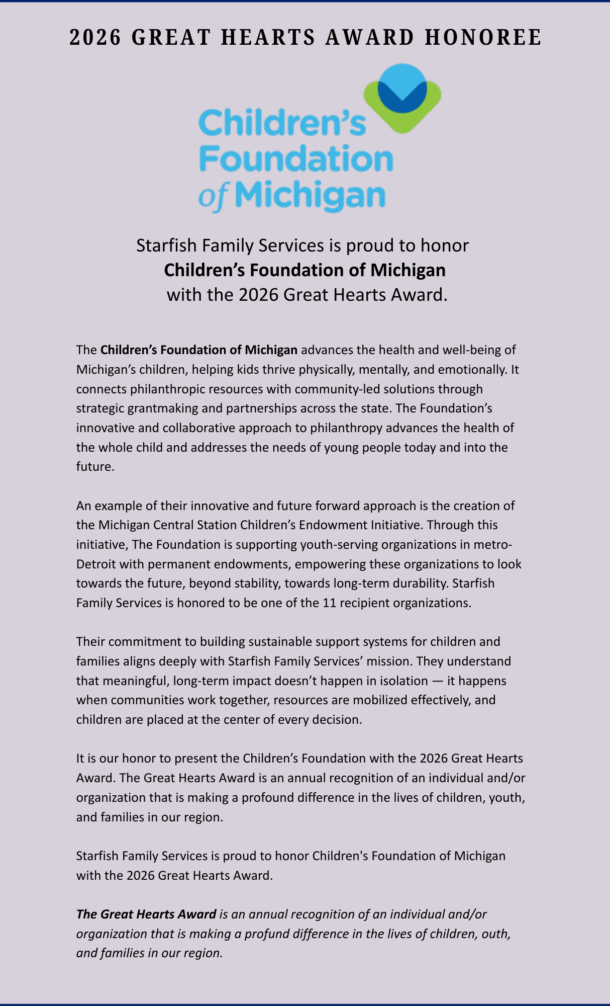 To learn more about becoming a 2026 Great Hearts Gala sponsor, check out our Sponsorship Opportunities or contact our Director of Development, Stacie Marentette, at [email protected].