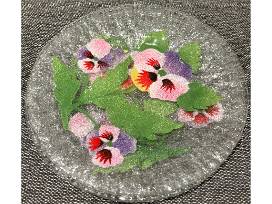 Handcrafted using the intricate fused glass technique, these pieces feature delicate floral patterns created with vibrant colors, resulting in rich texture, depth, and color that truly come alive in the light, making this collection as special as it is beautiful.