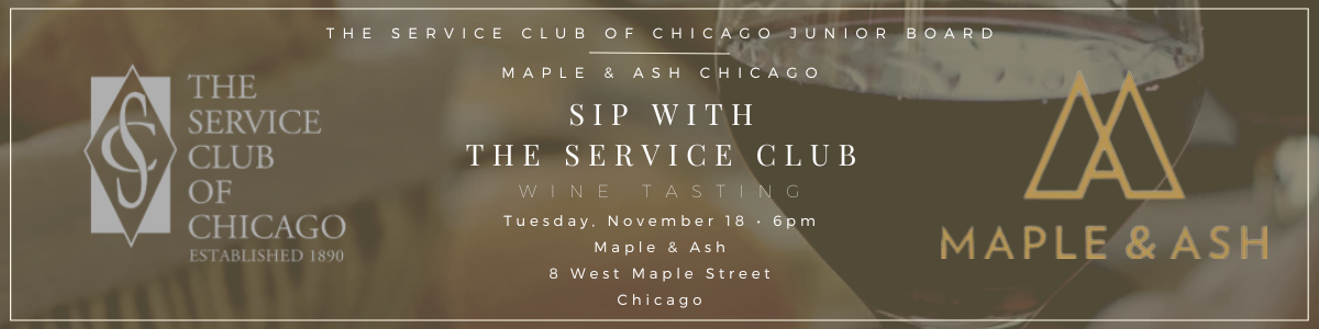 The Service Club of Chicago's Junior Board invites you to an exceptional wine tasting experience at Maple & Ash. Join members and guests as they enjoy bites and learn about various wines from Maple & Ash's Master Sommelier. Ticket price includes wine and bites.