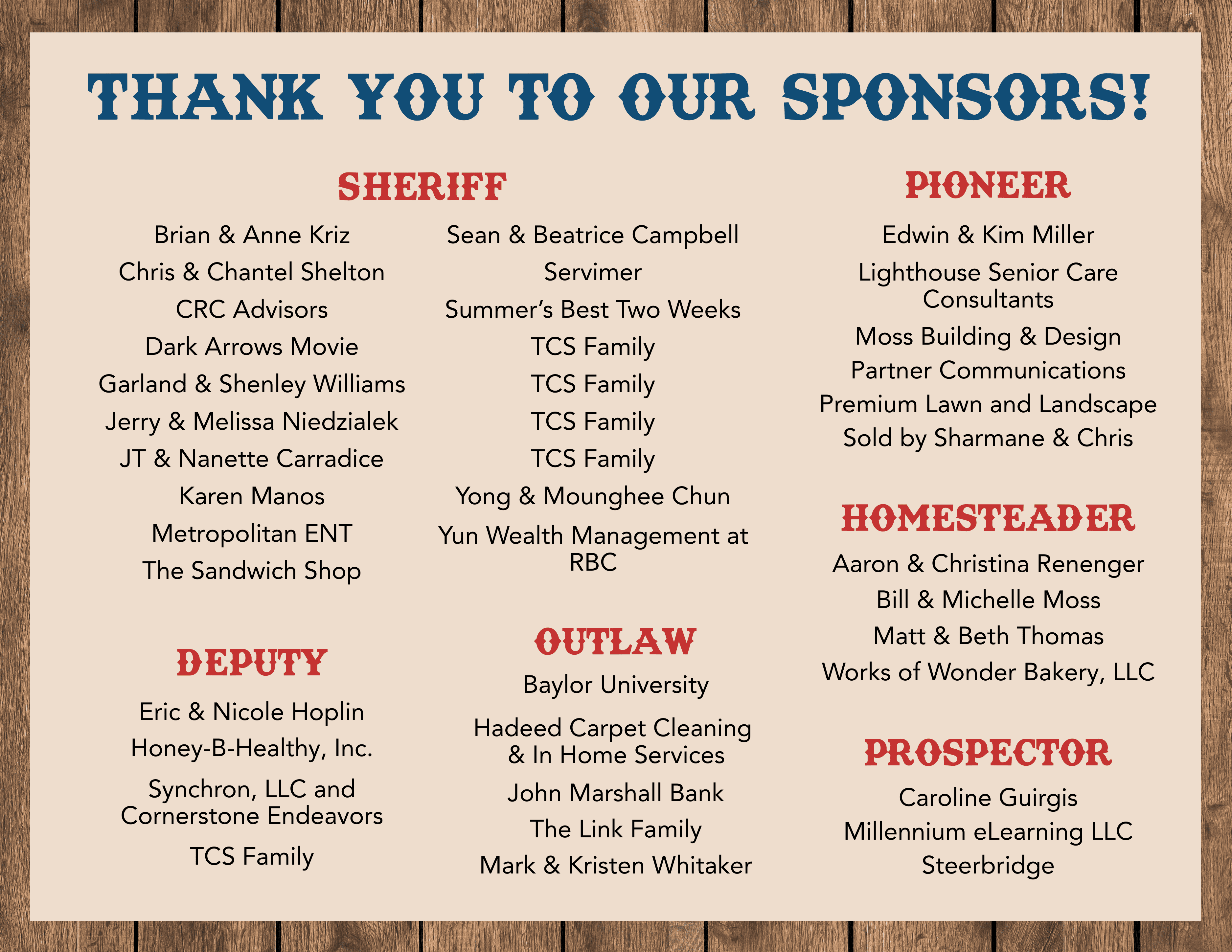 The saloon doors are swingin', the lanterns are lit, and the TCS Auction is ridin' into town in full Wild West fashion. Best hitch your wagon and hold onto your hat-this here's no ordinary night. We are pleased to invite you to Saddle up! Social & Auction on Saturday, March 7, from 5:00 to 9:00 p.m.