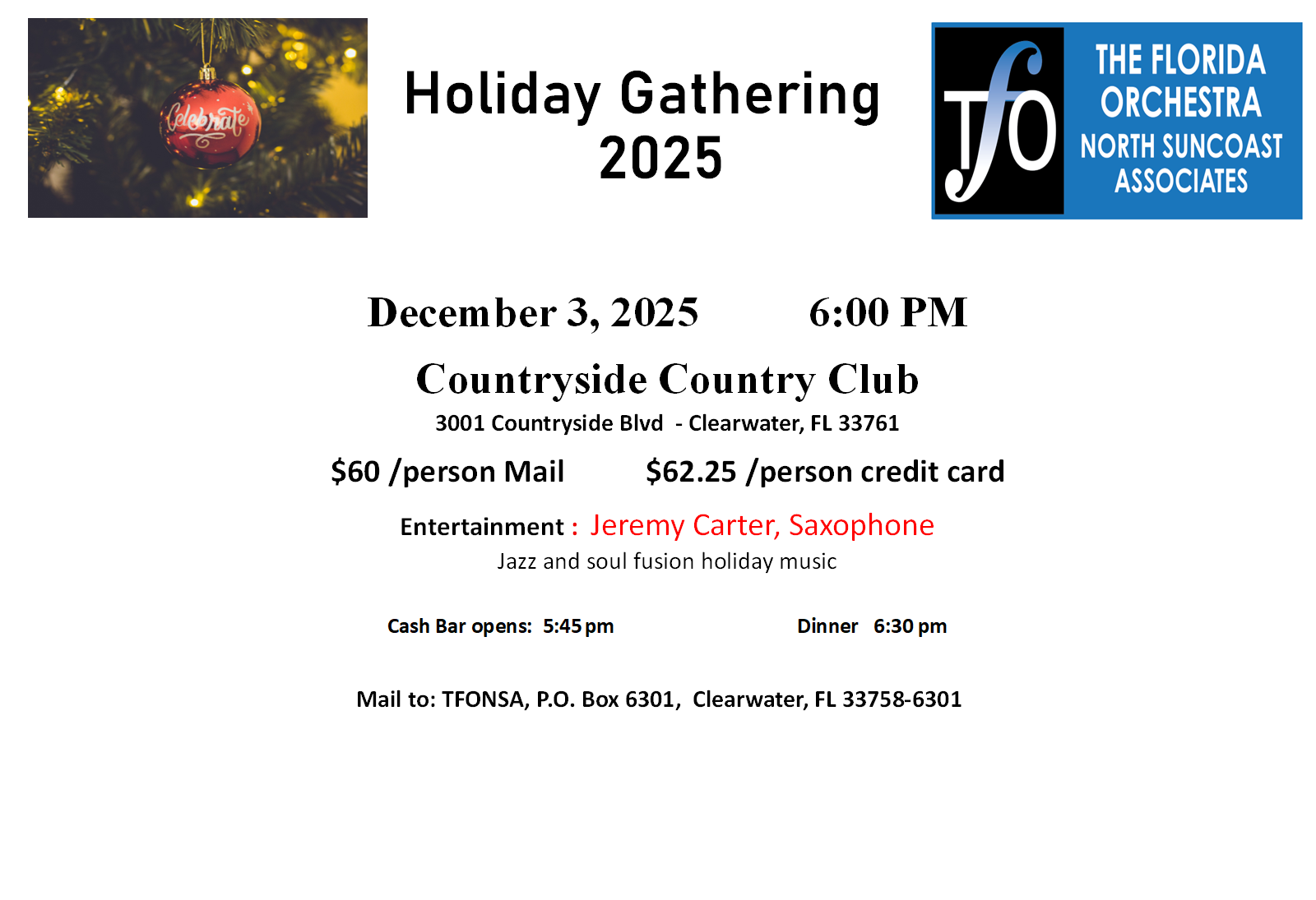 The Florida Orchestra North Suncoast AssociatesCall or email Audrey Bromberger for information or tickets