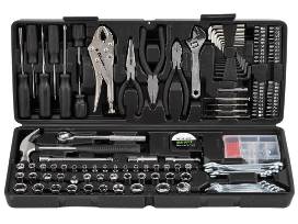 To complement it, the package includes a 130-piece tool set, stocked with a wide range of essentials for home projects, repairs, and DIY tasks. With sockets, wrenches, screwdrivers, and more, it's a versatile kit suited for beginners and seasoned fix-it pros alike.