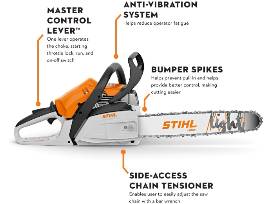 The MS 162 chainsaw is optimal for homeowners and occasional use. It is lightweight and maneuverable features reduced exhaust emissions and an anti-vibration system for increased operator comfort. The Master Control Lever allows you to operate the choke, throttle lock, and on-off switch with a single lever making this tool an ideal homeowner chainsaw.