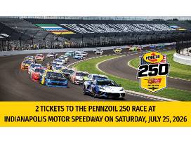 - 2 tickets to the Pennzoil 250 Race at Indianapolis Motor Speedway on Saturday, July 25, 2026
