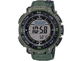 The Casio PRO TREK PRG340B-3 is a rugged, feature-packed outdoor watch built for hikers, campers, and anyone who needs reliable performance in changing conditions. This model features Casio's Triple Sensor Version 3 technology, providing altimeter, barometer, compass, and thermometer readings with impressive accuracy. The solar-powered design keeps the watch running without battery changes, and the biomass-derived resin case and band offer durability with an eco-friendly touch.