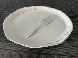 Elevate any gathering with this beautifully coordinated Mary & Martha Grace & Gratitude Collection set. Featuring a generously sized serving platter, beautiful serving fork, and two elegant candle holders, this trio brings both charm and meaning to your table. Soft neutral tones, inspirational messaging, and timeless craftsmanship make each piece as lovely to display as it is to use.