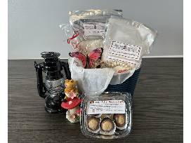 A cheerful and charming Spring Treats & Trinkets basket filled with sweets, creativity, and whimsical decor. This collection blends homemade-style goodies with bright seasonal accents, making it a delightful auction item for families, bakers, or anyone who loves a touch of springtime joy.