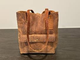 A stylish, artisan-crafted package featuring both quality leatherwork and a local shopping experience. This item includes a small leather basic bag in rustic brown, offering a classic, minimalist design perfect for everyday use. The rich brown finish and handcrafted feel make it a versatile accessory that pairs effortlessly with any outfit.
