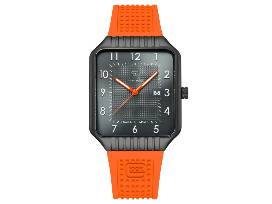 Make a bold statement with this sleek Glock Precision wristwatch. Encased in gunmetal-finish stainless steel and protected by scratch-resistant sapphire crystal, this watch offers clarity and durability. Its square dial showcases hands and indices with Swiss Super-LumiNova in vibrant orange. The matching-color silicone strap features GLOCK's RTF texture, ensuring a comfortable fit. With a 5 ATM water-resistance rating and a precise Swiss movement, it is the epitome of reliability.