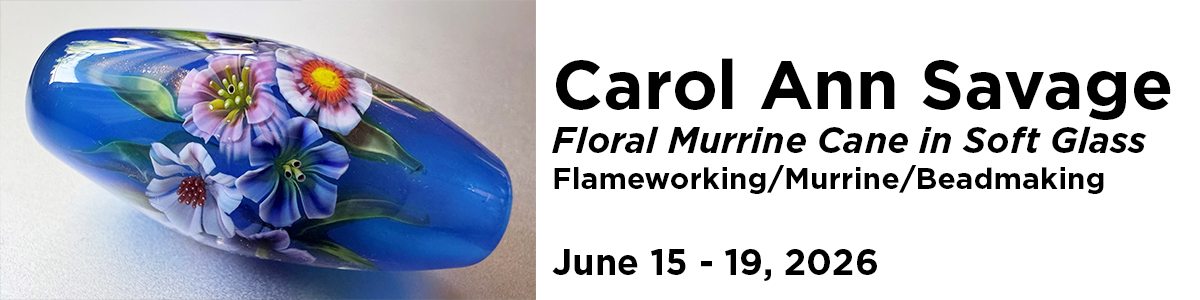 In this class students will learn to create 3D floral murrini cane which can then be embedded and encased in both beads and marbles. At the torch students will develop the ability to handle larger masses of glass and pull delicate flower cane. Overall design and encasement techniques will be an integral part of this class, as well as the use of a variety of glasses for a vibrant color palate. This class uses soda lime (soft) glass.