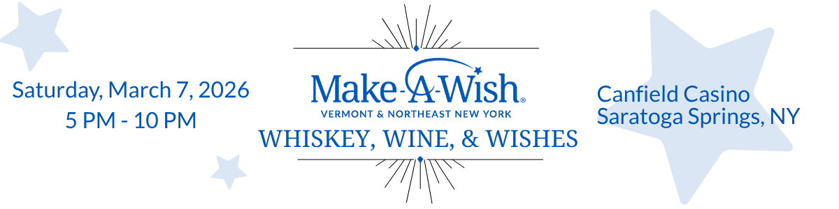 You can still participate in the auction!Following the success of our sold-out inaugural gala, we are extending that momentum and elevating the experience even further this year. Step back in time and join us at Saratoga's historic Canfield Casino for the unforgettable Whiskey, Wine, & Wishes gala supporting Make-A-Wish Vermont & Northeast New York on Saturday, March 7, 2026.